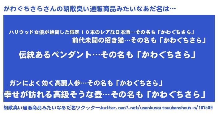 | 意味不明あだ名 | 『とにかく怪しいかわぐちさら』 |