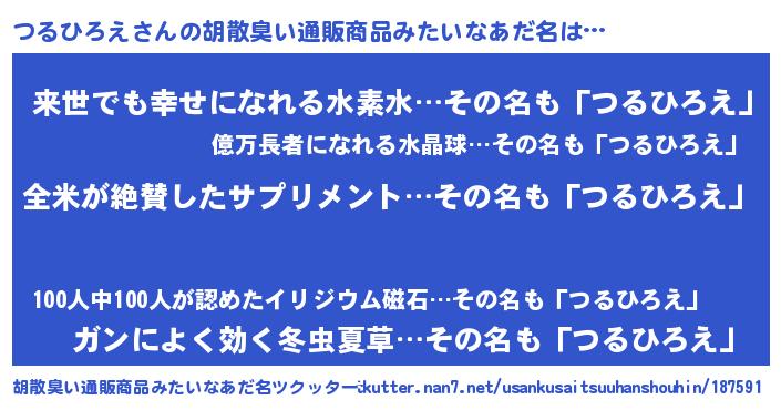 | 意味不明あだ名 | 『とにかく怪しいつるひろえ』 |