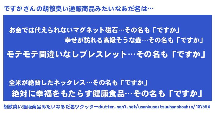 | 男性向けラノベタイトル風あだ名 | 『ですかの憂鬱』『はたらくですかさま!』 |