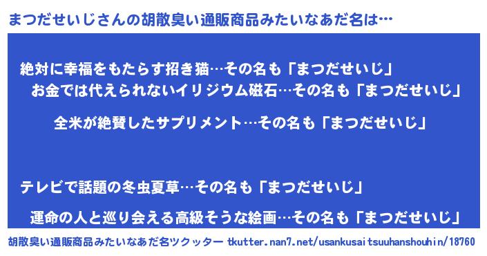 | ヘコむあだ名 | 『まつを』『まつだせいじ(笑)』 |
