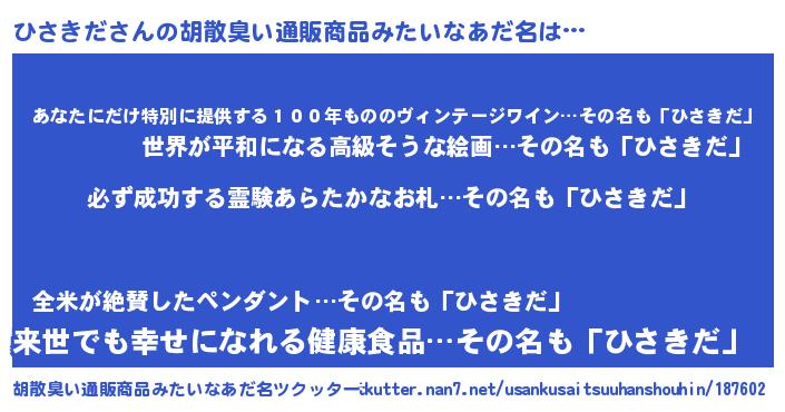 | 男性向けラノベタイトル風あだ名 | 『ひさきだの憂鬱』 |