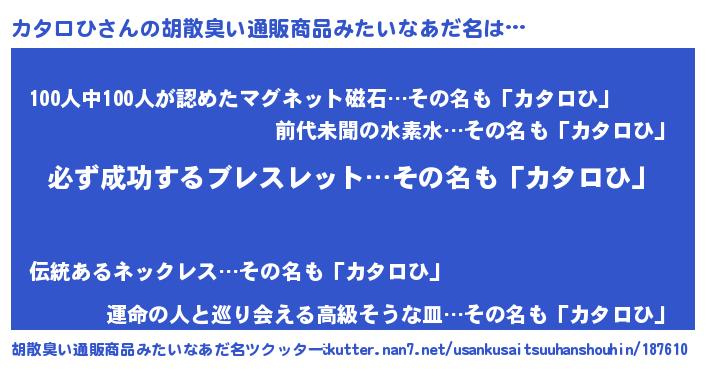 | 男性向けラノベタイトル風あだ名 | 『カタロひの憂鬱』『カタロヒスレイヤー』 |