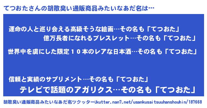 | 意味不明あだ名 | 『住所不定無職てつおた(59歳)』 |