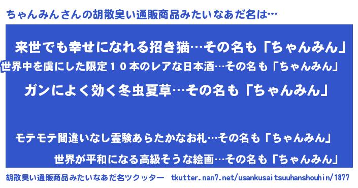 | 意味不明あだ名 | 『自称ちゃんみん』『ニラ科ちゃんみん属』 |