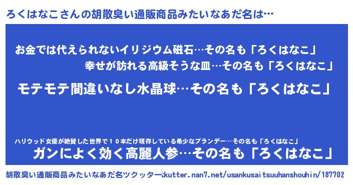| 男性向けラノベタイトル風あだ名 | 『ロクハナコアートオンライン』 |