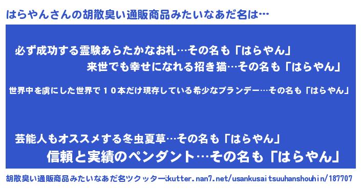 | ヘコむあだ名 | 『はらもー』『はらを』『なまこ酢』 |