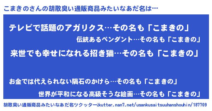 | 意味不明あだ名 | 『永久保存こまきの』『自称こまきの』 |
