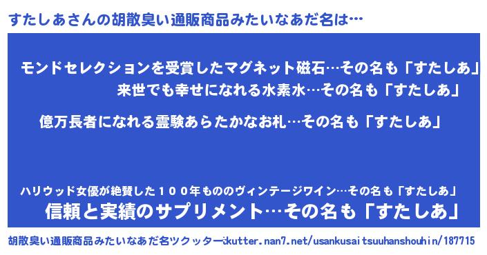 すたしあさんの胡散臭い通販商品みたいなあだ名をツクッター!