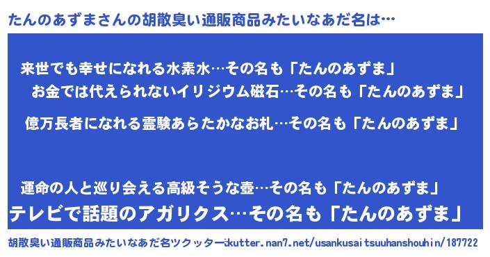 | 男性向けラノベタイトル風あだ名 | 『タンノアズマアートオンライン』 |