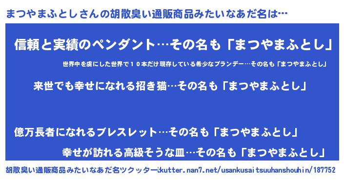 | ヘコむあだ名 | 『まつやまふとし(笑)』『まつぷりん』 |