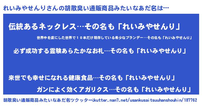 | 伝説のあだ名 | 『伝説のスナイパーれいみやせんり』 |