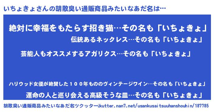 | 意味不明あだ名 | 『自称いちょきょ』『永久保存いちょきょ』 |