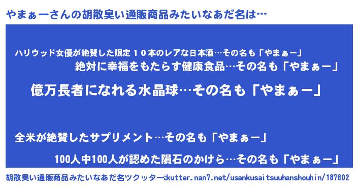 | 欧米人風あだ名 | 『マイケルやまぁー』『ダニエルやまぁー』 |