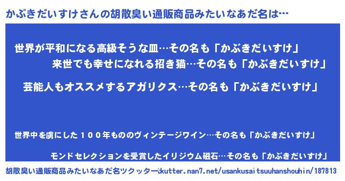 | 男性向けラノベタイトル風あだ名 | 『Re:かぶきだいすけから始める異世界生活』 |