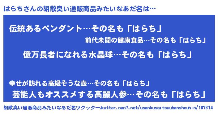 | 欧米人風あだ名 | 『マイケルはらち』『ウサインはらち』 |
