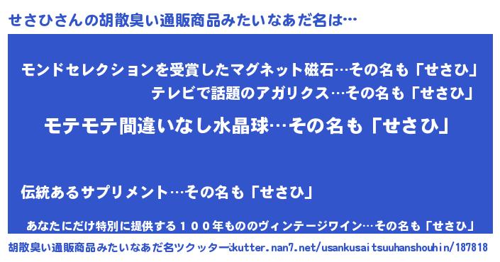 | 欧米人風あだ名 | 『マイケルせさひ』『ダニエルせさひ』 |