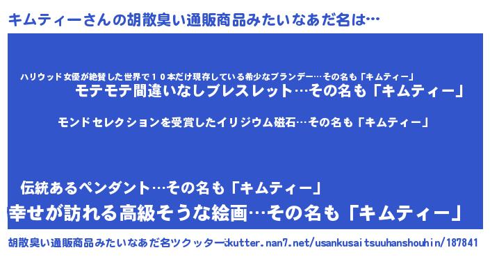 | ヒーロー風カッコイイあだ名 | 『天空の使者キムティー』『仮面キムダー』 |