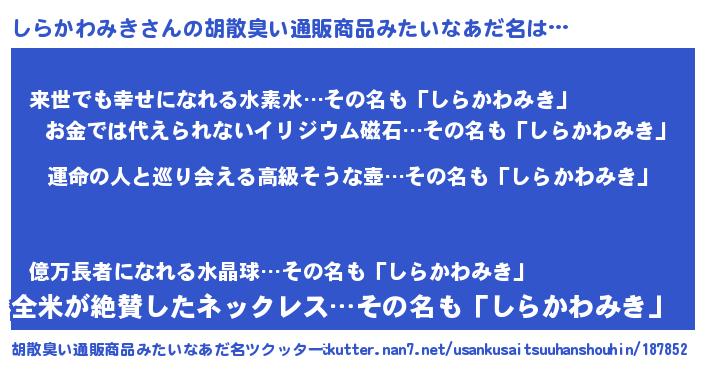 | 男性向けラノベタイトル風あだ名 | 『しらかわみきに滅ぼされるだけの簡単なお仕事です』 |