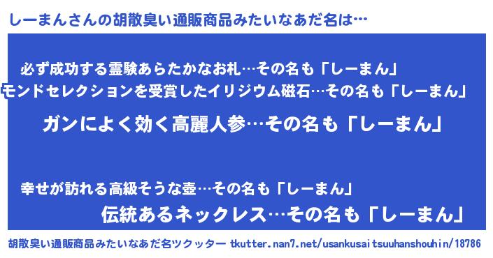 | 意味不明あだ名 | 『自称しーまん』『ペロリンしーまん』 |