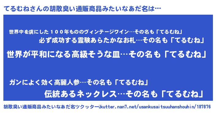 | ヘコむあだ名 | 『豆乳』『てるお』『てるふぇ~』 |