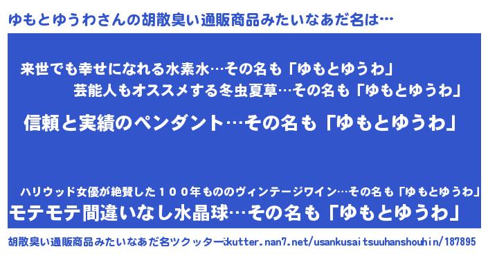 | 男性向けラノベタイトル風あだ名 | 『ダンジョンにゆもとゆうわを求めるのは間違っているだろうか』 |