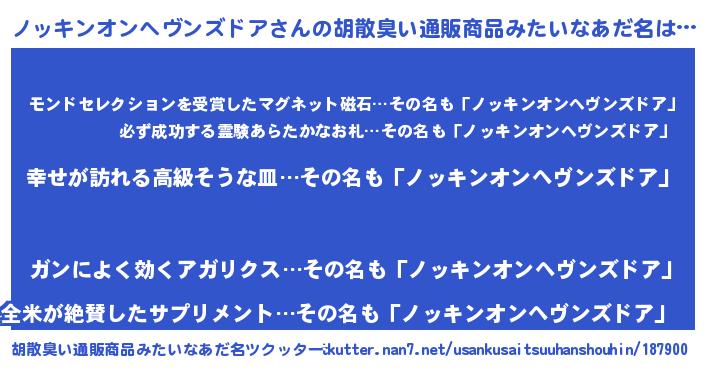 | ヒーロー風カッコイイあだ名 | 『ウルトラノッキンオンヘヴンズドアマン』 |