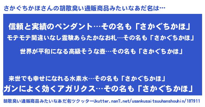 さかぐちかほさんの胡散臭い通販商品みたいなあだ名をツクッター!