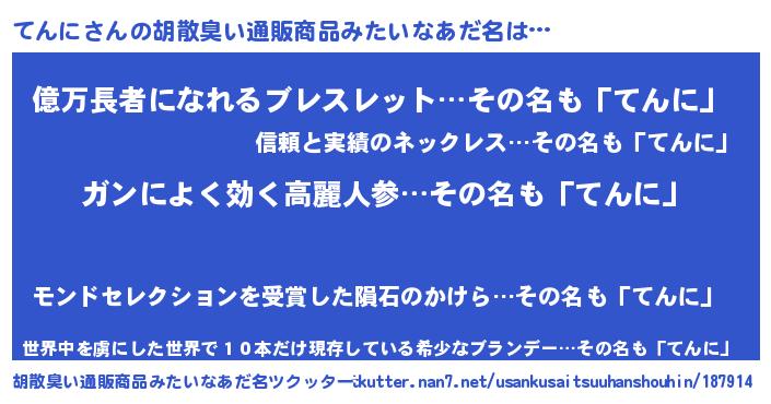 | 意味不明あだ名 | 『自称てんに』『ペロリンてんに』 |