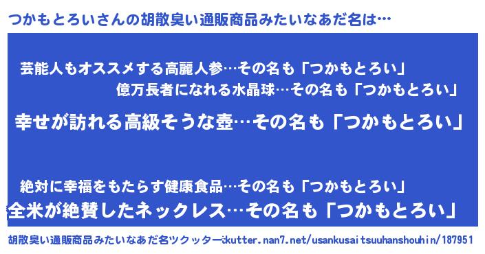 | 意味不明あだ名 | 『つかもとろいフォーエバー』 |