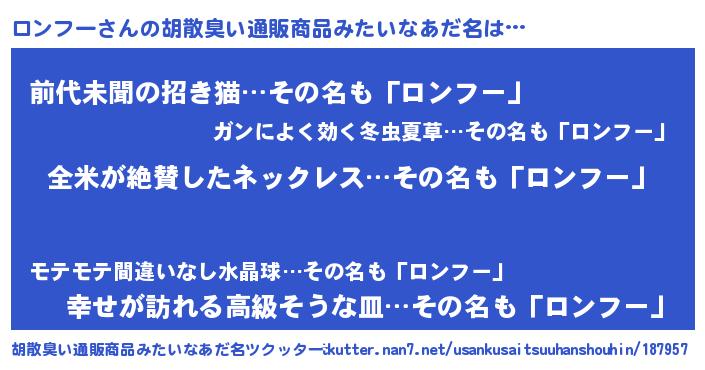 | ヘコむあだ名 | 『ロンっ子』『ロンフー(小並感)』 |
