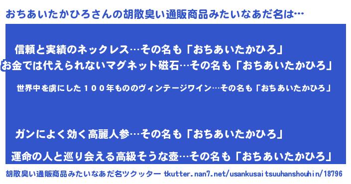 | 意味不明あだ名 | 『住所不定無職おちあいたかひろ(6歳)』 |