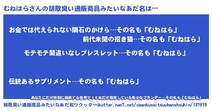 | ヘコむあだ名 | 『むねにー』『むねはら(笑)』『牛乳』 |