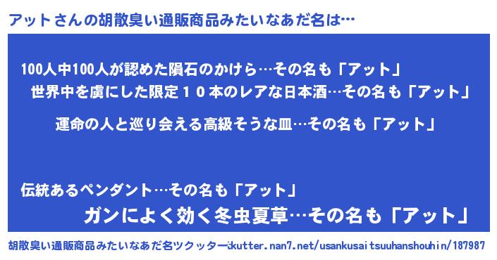 | 意味不明あだ名 | 『アットフォーエバー』『自称アット』 |