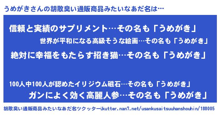 | 意味不明あだ名 | 『永久保存うめがき』『自称うめがき』 |