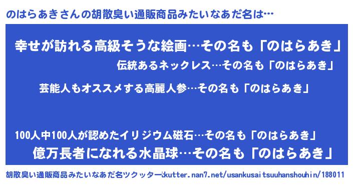 | 肩書あだ名 | 『のはらあき閣下』『のはらあき総理大臣』 |