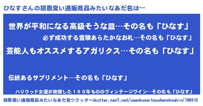 | 意味不明あだ名 | 『自称ひなす』『ひなすフォーエバー』 |