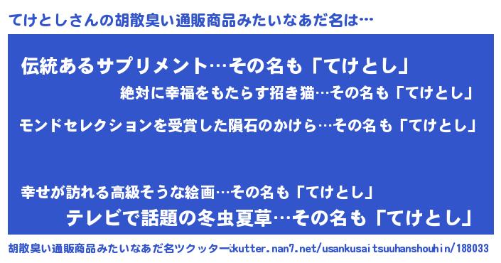 | ヘコむあだ名 | 『てけっちょ』『てけとし(爆)』 |