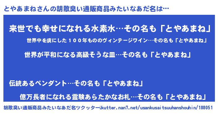 | 意味不明あだ名 | 『とやあまねフォーエバー』 |