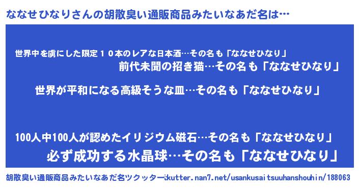 | 意味不明あだ名 | 『ななせひなりフォーエバー』 |