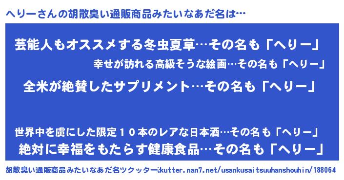 | 意味不明あだ名 | 『とにかく怪しいへりー』『自称へりー』 |