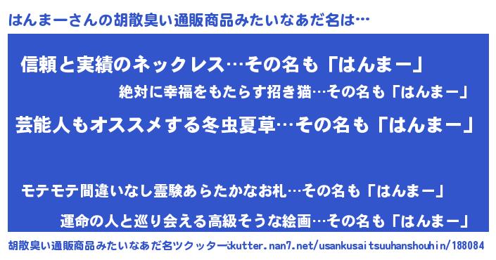 | 意味不明あだ名 | 『自称はんまー』『はんまーフォーエバー』 |
