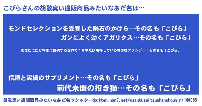 | ヘコむあだ名 | 『こぴら(震え声)』『こぴ太郎』 |