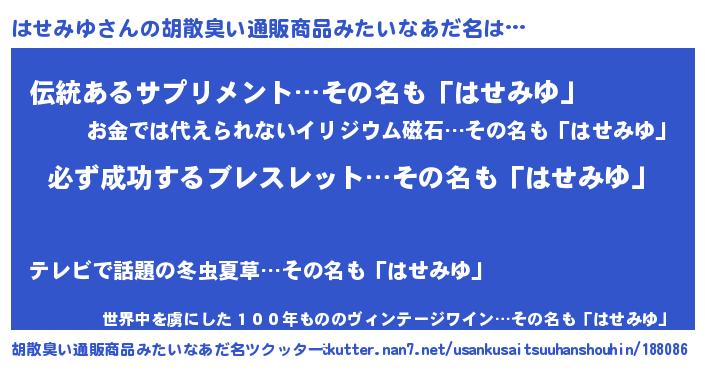 | ポケモン風あだ名 | 『ハセチュウ』『ヒハセミユ』 |