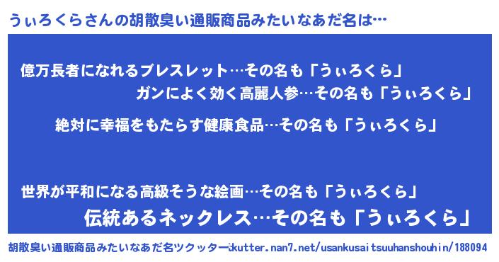 | ヒーロー風カッコイイあだ名 | 『ネオウィロクラ』『スーパーウィロクラ』 |