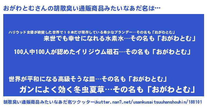 | ヘコむあだ名 | 『おがわとむ(笑)』『牛乳』『おがお』 |