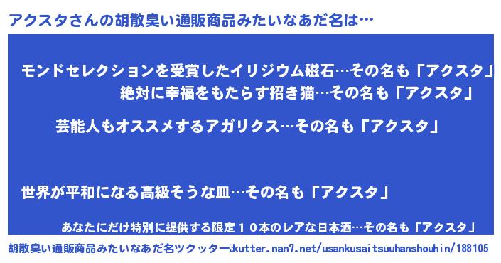 | 恥ずかしいあだ名 | 『アクスタデラックス』『アクちん』 |