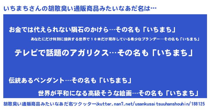 | ヒーロー風カッコイイあだ名 | 『最強戦士イチマチ』『愛の使者いちまち』 |