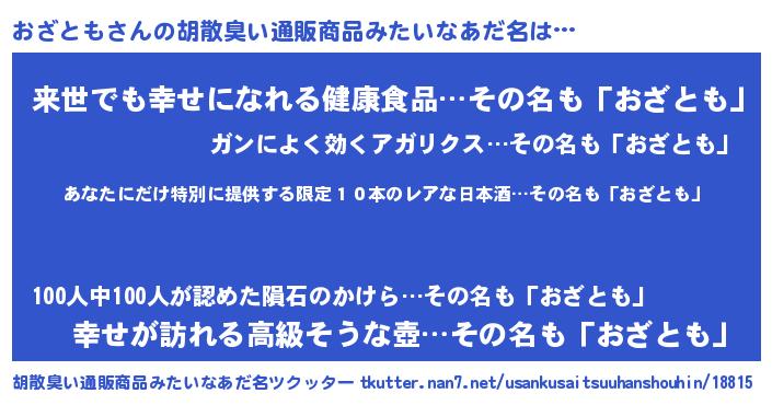 | ヘコむあだ名 | 『おざとも(笑)』『なまこ酢』 |