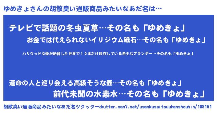 | ヘコむあだ名 | 『ゆめきょ(苦笑)』『なまこ酢』 |