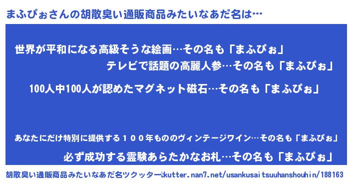 | 肩書あだ名 | 『まふぴぉ教授』『まふぴぉ総理大臣』 |